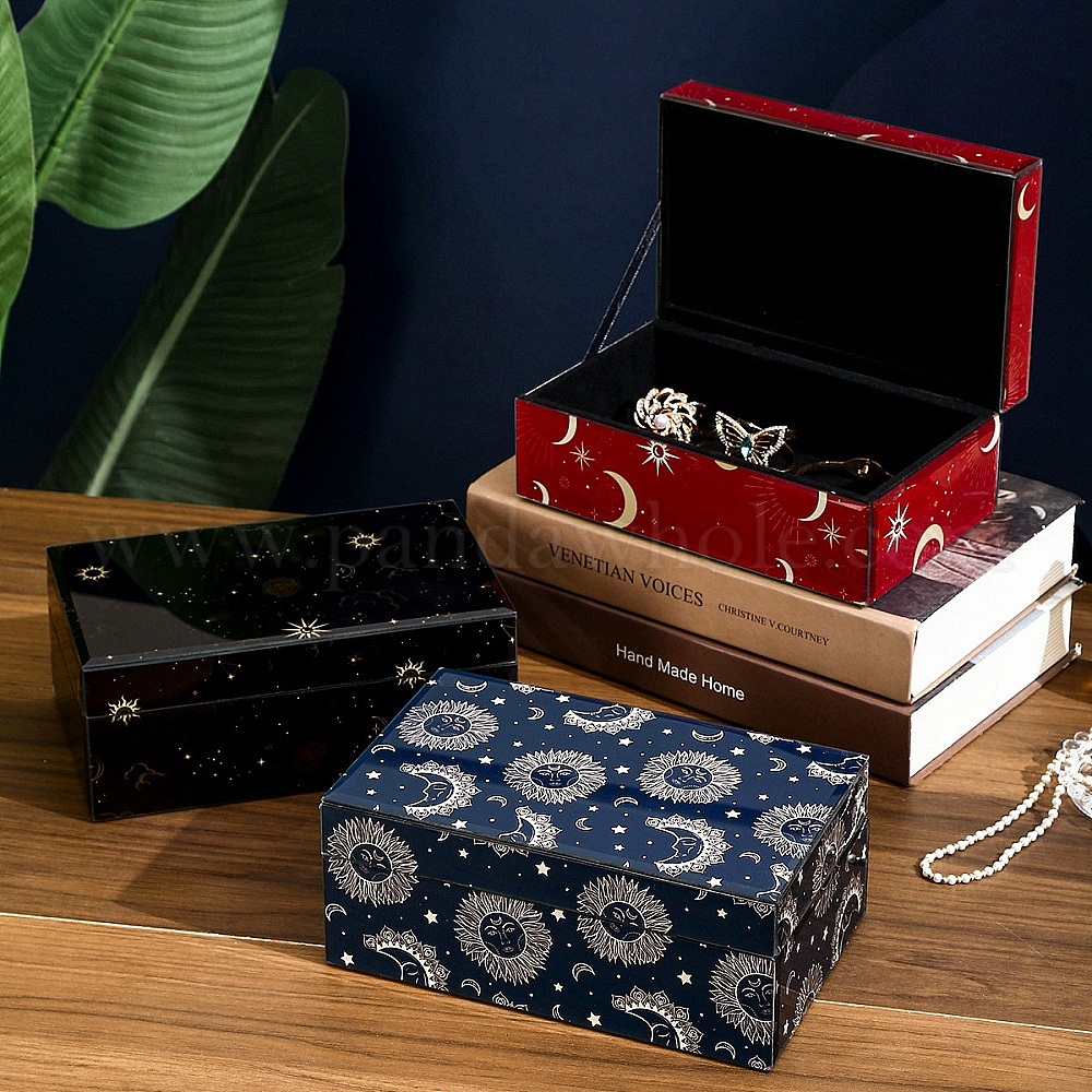 Стеклянные и МДФ коробки для хранения украшений, футляры для сокровищ "солнце, луна, звезда" с бархатной подкладкой, квадрат / прямоугольник