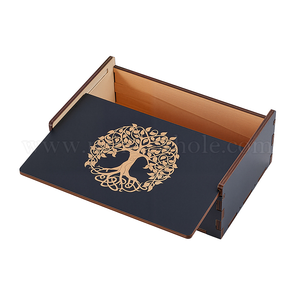 1деревянные коробки с прямоугольной гравировкой и раздвижной крышкой, для ожерелья, Кольца, серьги и подвески, кокосового коричневый (032JKZ)