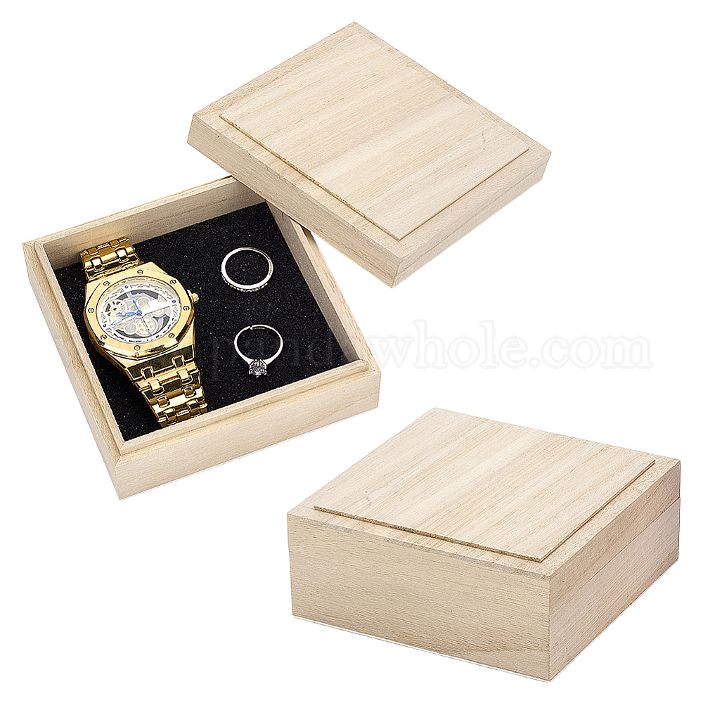 • Квадрат Деревянные ящики для хранения, подарочные коробки с губкой, старинный белый, квадратный, 11x11x4.4 см