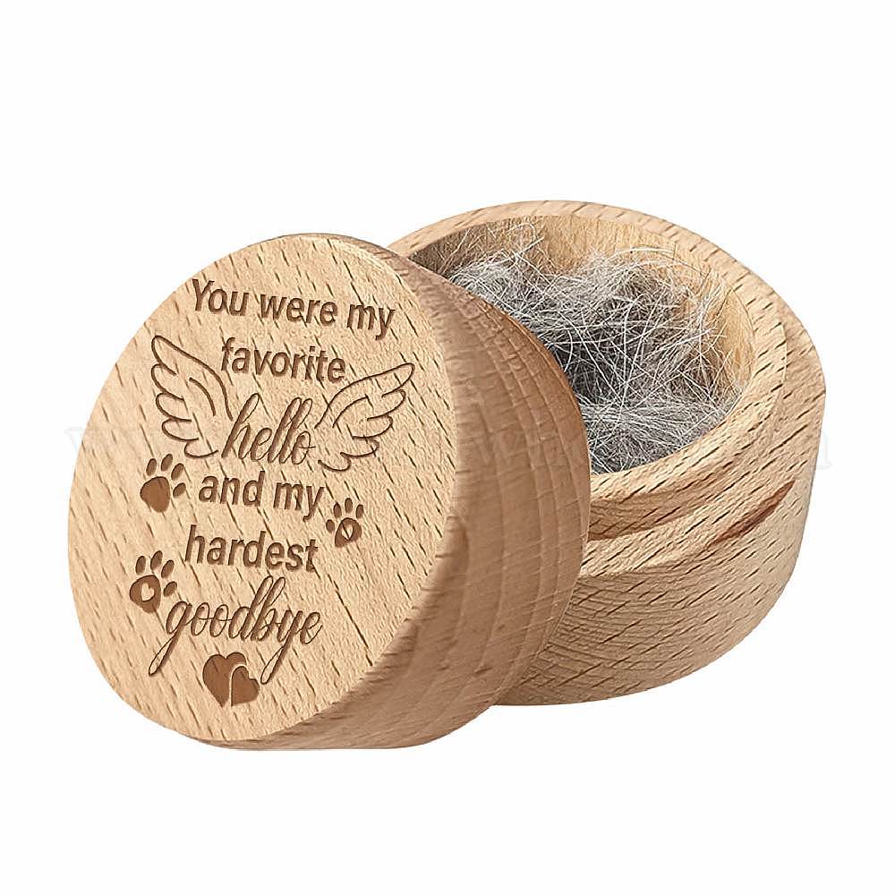 1коробки для хранения шерсти домашних животных из поликарбоната и бука с гравировкой, круглые деревянные мемориальные футляры из меха домашних животных с бархатными мешочками на завязках из поликарбоната, деревесиные (036KKK)