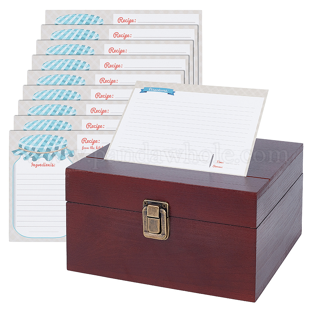 1Бамбуковые коробки для хранения рецептов с защелками, прямоугольные, с 2 пакетами прямоугольные кухонные карточки с рецептами