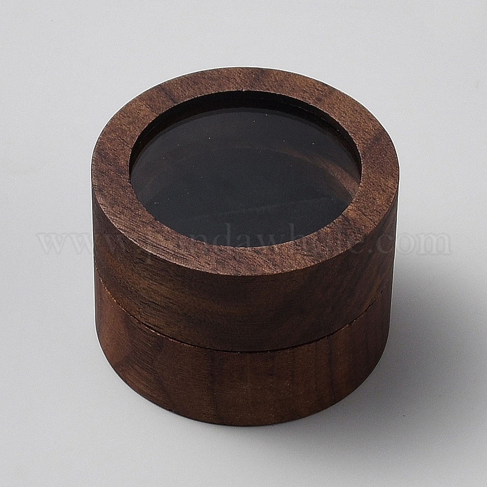 • Кокосово-Коричневый 1-деревянные коробки для хранения колец с бархатной внутренней отделкой, колонка, кокосового коричневый, 5.1x3.5 см