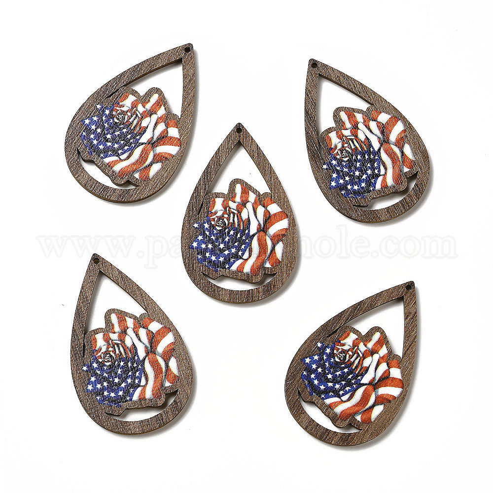 Односторонние подвески из осины с принтом на тему американского флага, Подвеска в форме капли с рисунком ракеты/арки/орла/шляпы/человека/розы