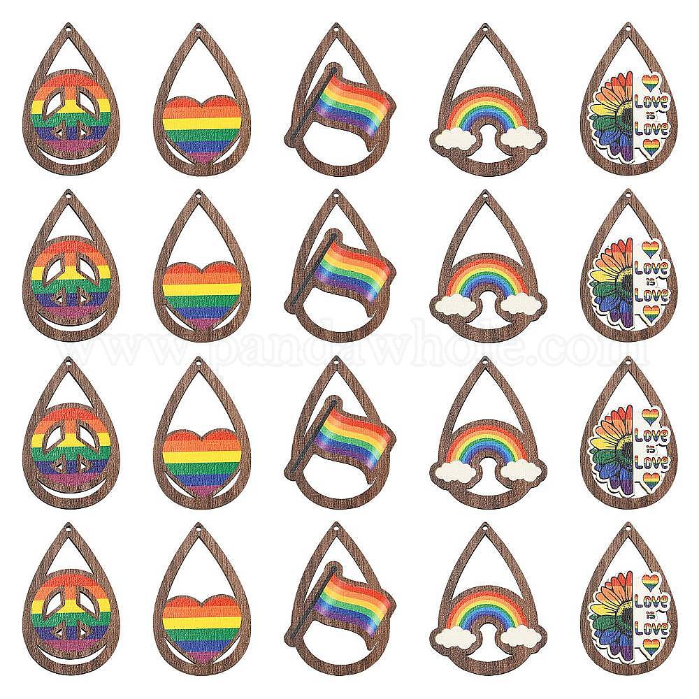 40шт 5 стилей радуга печатных осины большие подвески, слезинка с сердцем, радугой, флагом, знаком мира и подвеской в виде подсолнуха