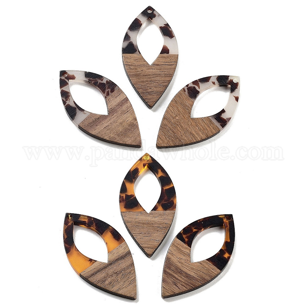 • Кокосово-Коричневый Ореховое дерево с подвеской из смолы, овальные, кокосового коричневый, 47.5x24x3.5 мм, отверстие : 2 мм