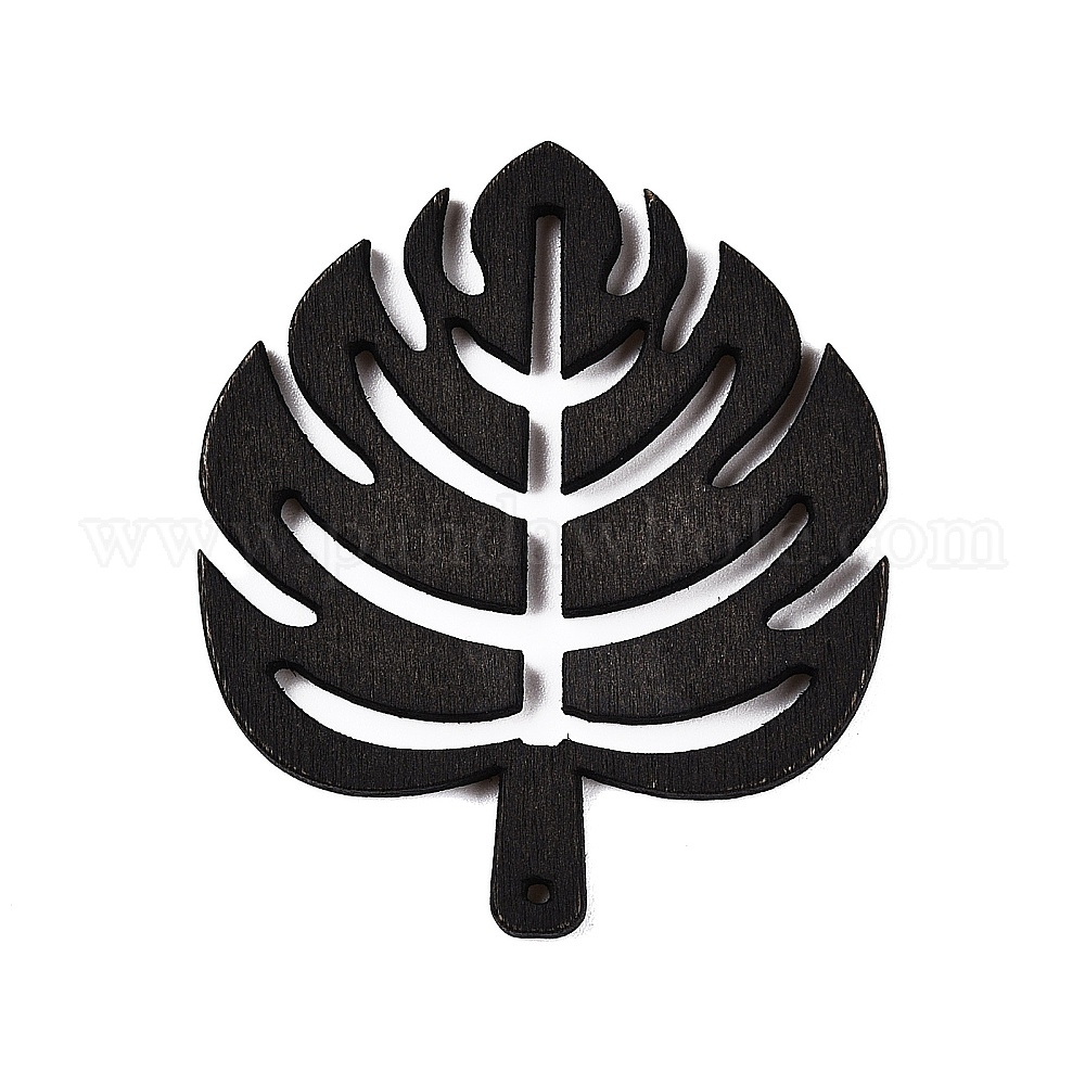 • Черный Кулоны из натурального тополя, окрашенные, дерево, чёрные, 49.5x42x2 мм, отверстие : 1.4 мм