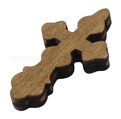 Древесины подвески, окрашенные, без свинца, крестик, коричневые, 40x23x5 мм, отверстие : 2 мм