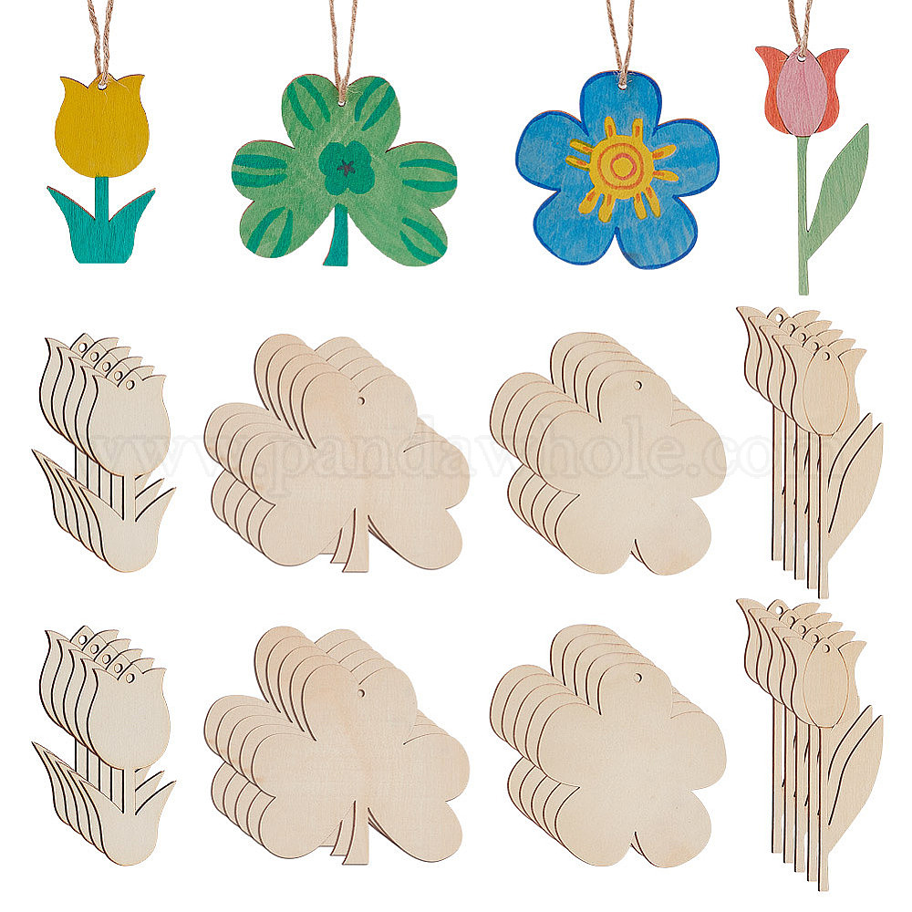 40шт 4 стили деревянные большие подвески, цветок и клевер