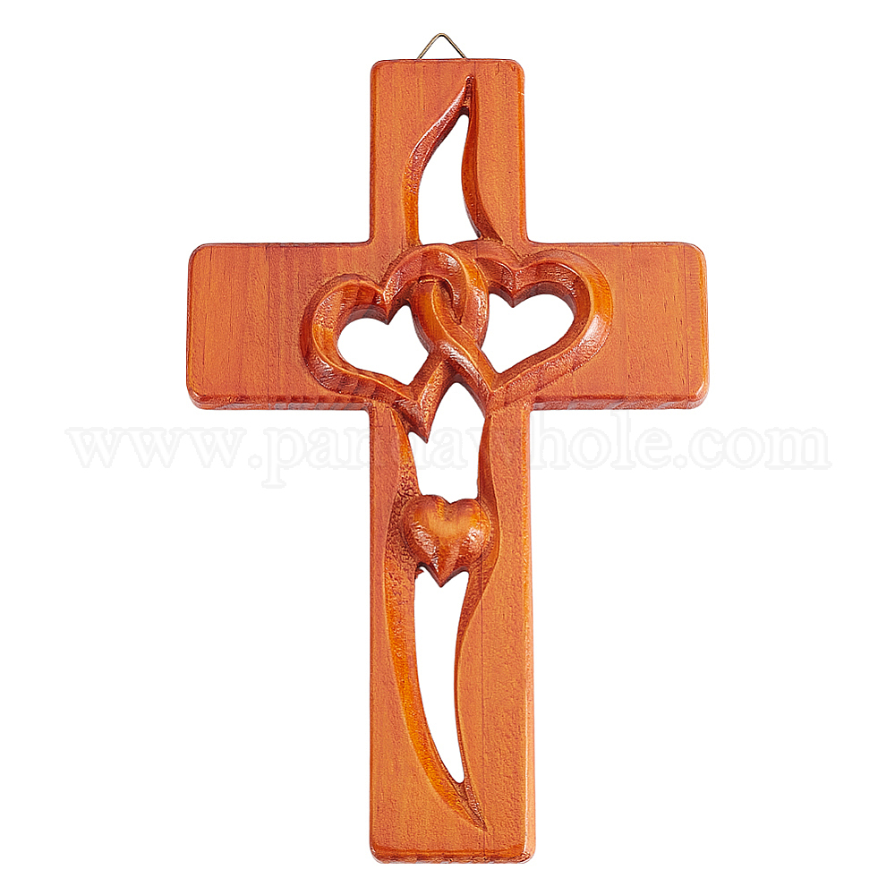 Деревянные большие подвески, с железной петлей, крест с переплетенными сердцами