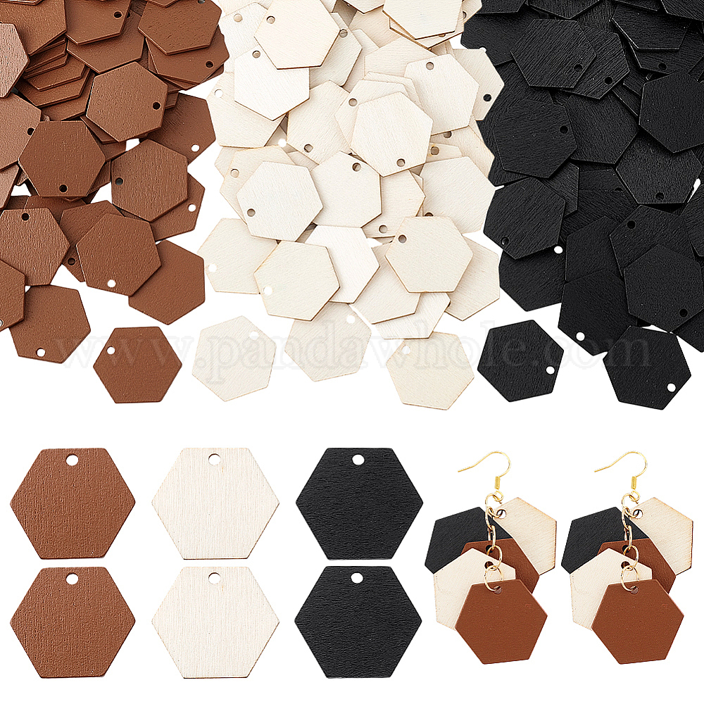 240 шт 3 цвета подвески из дерева, шестигранные прелести