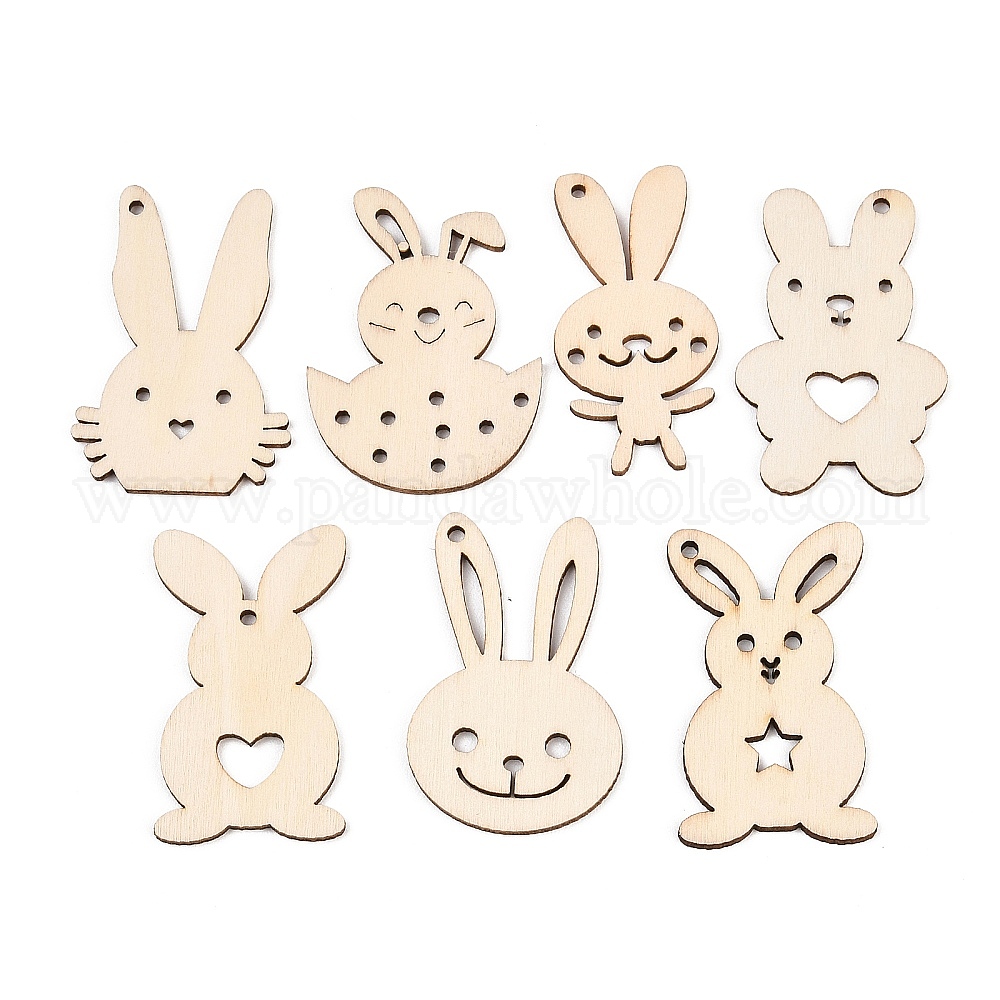 • Бланшированный Миндаль 7 деревянные подвески, кролика прелести, бланшированный миндаль, 49~50x25.5~36.5x2.5 мм, отверстие : 2 мм