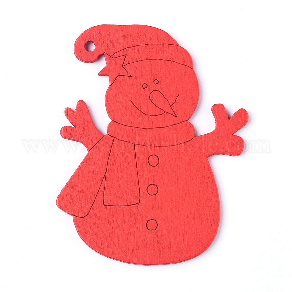 • Красный Большие подвески из натурального дерева тополь, окрашеные, на Рождество, снеговик, красные, 69.5x53.5x2.5 мм, отверстие : 2.5 мм