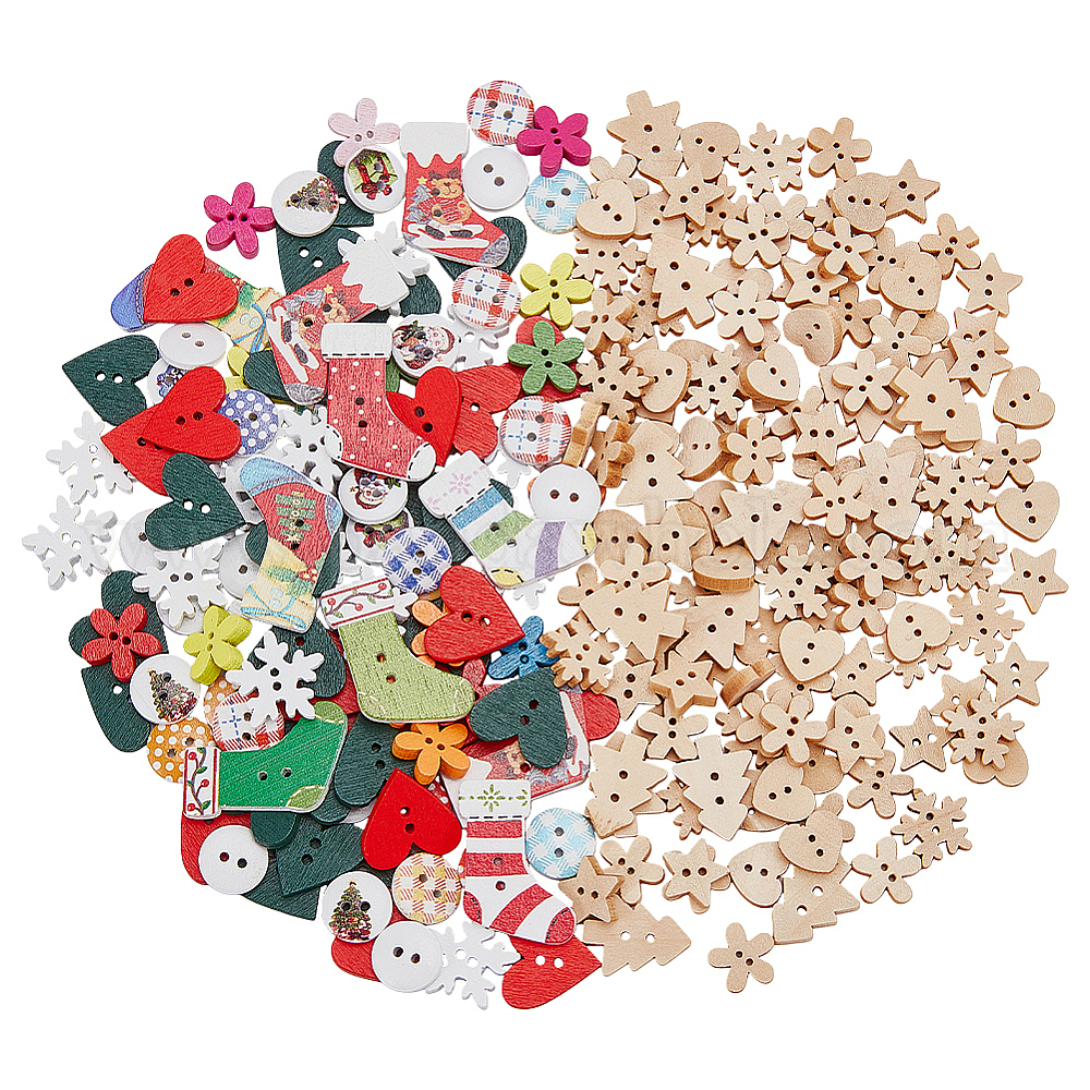 • Mixed Shapes 240шт 2 стили деревянные кнопки, 2-луночное, разнообразные, 12~29x12~20.5x2.5~4 мм, отверстие : 1.2~1.8 мм, 120 шт / стиль