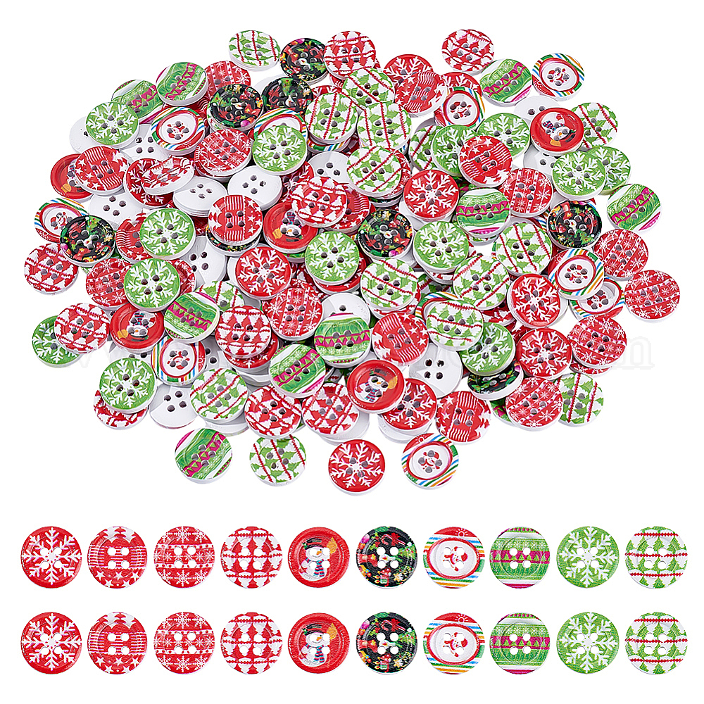 240шт деревянные пуговицы, аксессуары, 4-луночное, плоские круглые с рисунком