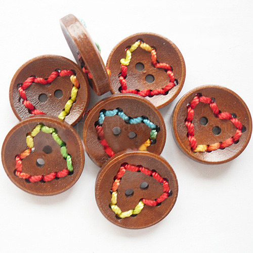 Круглые окрашены 2-луночное кнопки с красочными темы, Деревянные пуговицы