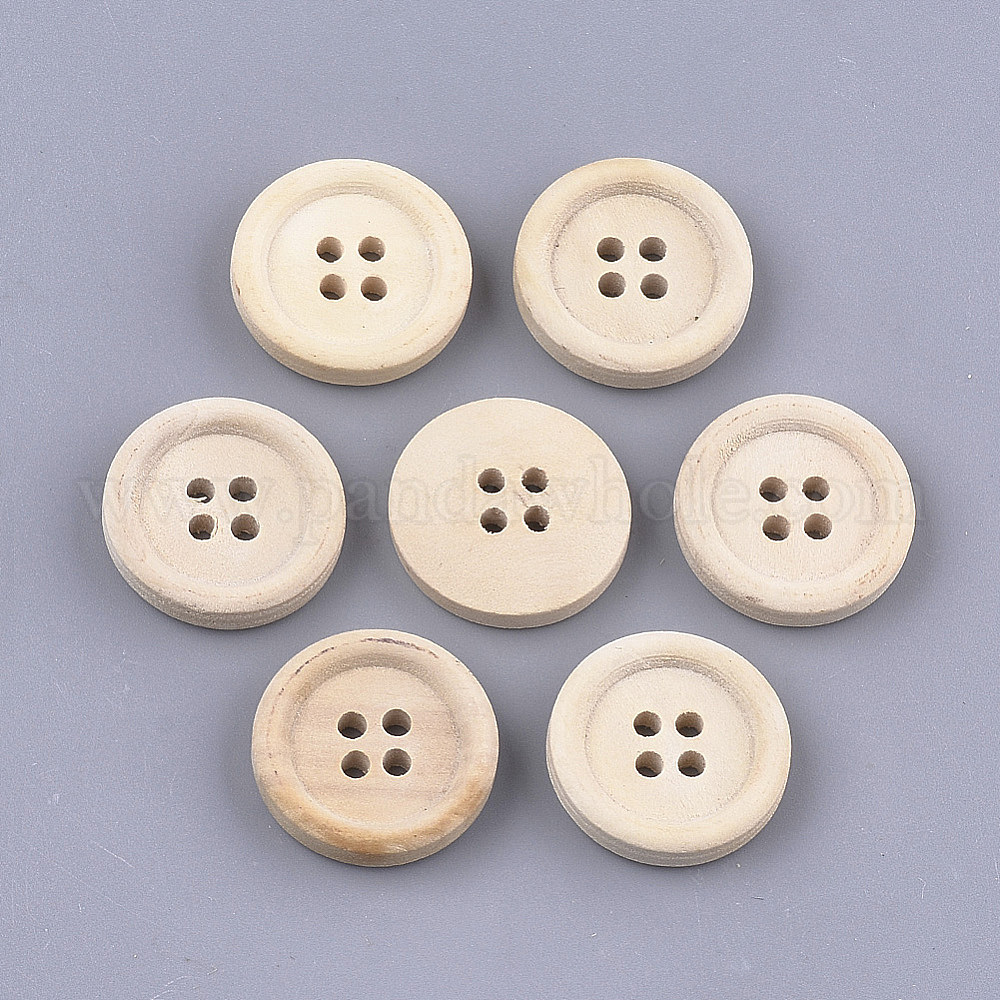 4-луночные пуговицы из дерева, неокрашенными, плоско-круглые