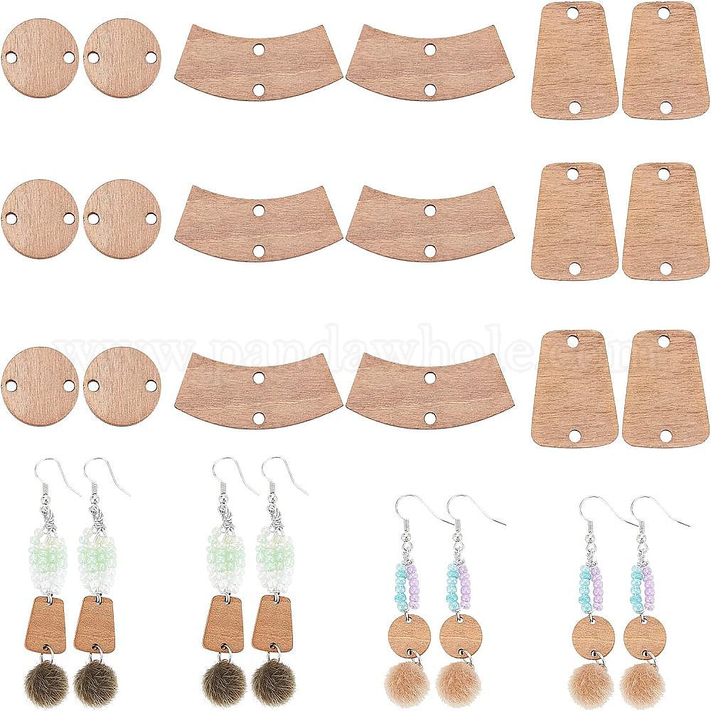 90 шт 3 стиль необработанные деревянные соединительные подвески, плоско-круглые, изогнутая трапеция, закругленная трапеция