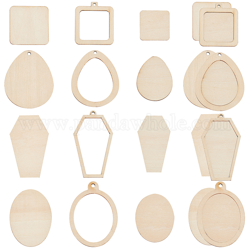 16 наборы 4 стиль необработанный деревянный кулон и набор вырезов, для поделки живописи, пирографическое ремесло, разнообразные