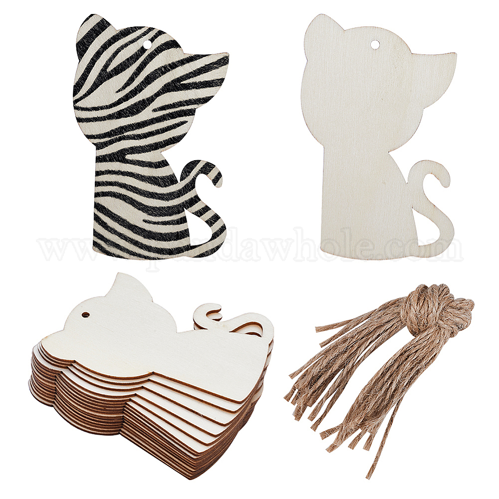 Тема животных незаконченные пустые деревянные подвески набор для рисования искусство, пирография, домашнего декора, с джутовым шнуром