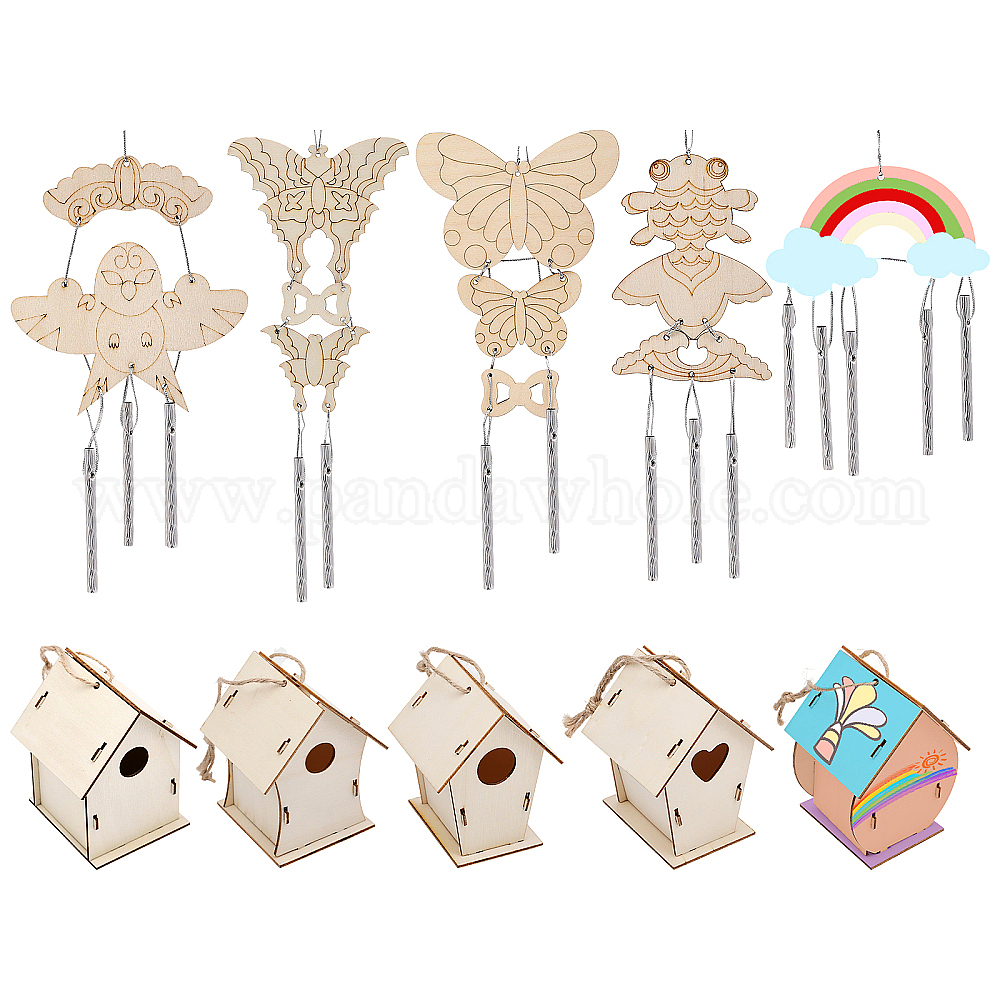 20 наборы 10 наборы для самостоятельного изготовления деревянных колокольчиков и скворечников, включая алюминиевую трубку случайного цвета, нить