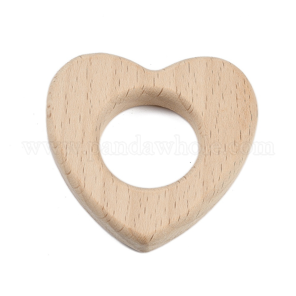 • Цвет Древесины Детские игрушки для прорезывания зубов из натурального бука, кольца для прорезывания зубов у новорожденного малыша, сердце, деревесиные, 52x54x10 мм, отверстие : 25 мм