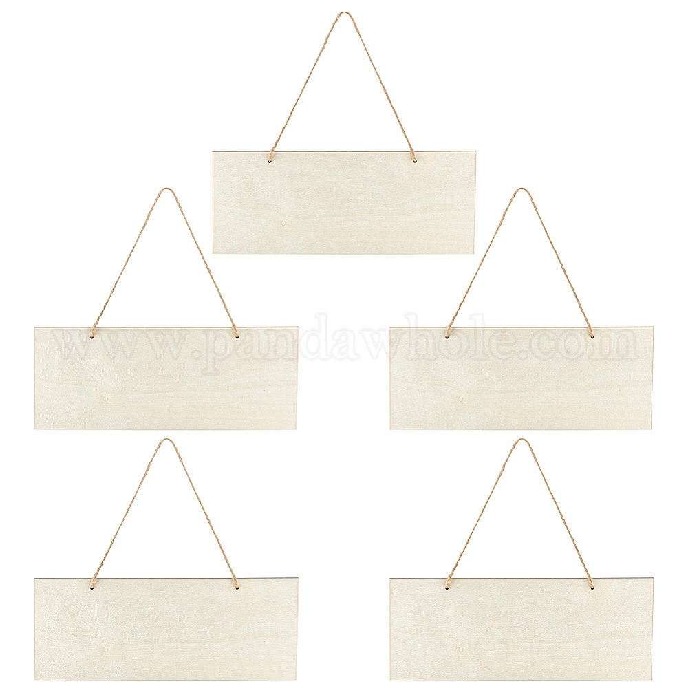 Незаконченные пустые деревянные подвесные украшения, с джутовой веревкой, прямоугольные