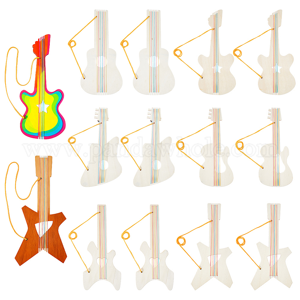 12шт. 6 варианты необработанных деревянных подвесок в виде гитар для живописи, пирография, домашнего декора