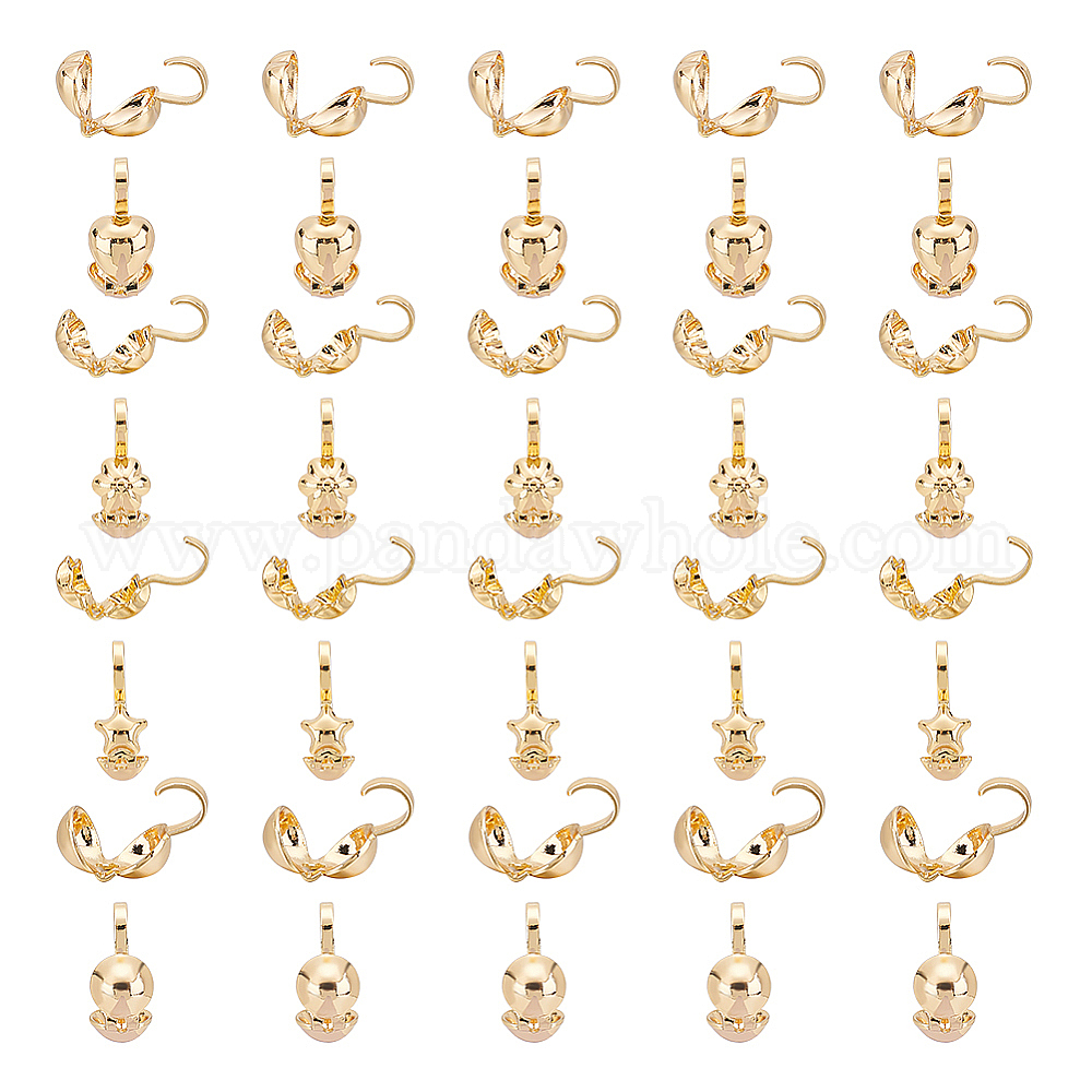 40шт 4 стиль латунные наконечники бусин, Калотте заканчивается, крышка раскладушки, в форме сердца и круглой формы, цветка и звезды (02JFHS)