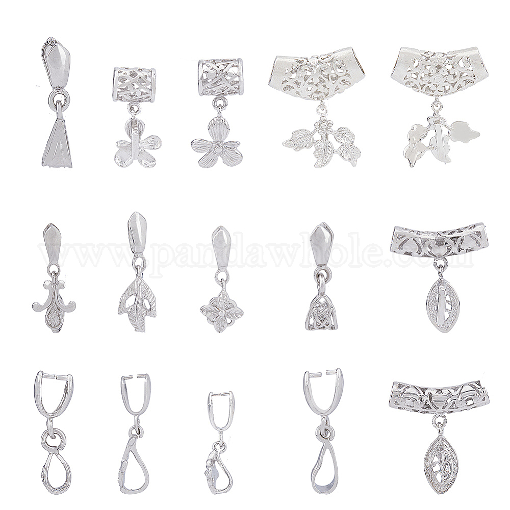 • Платина 28шт 9 стиль латунные зажимные скобы, трубчатые поручни и поручни для ледоруба, листьев и цветов, платина, 23.5~39 мм