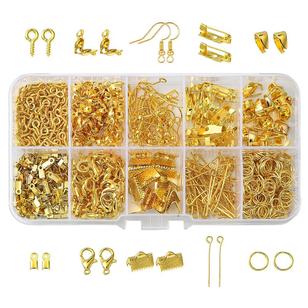 Набор для поиска поделок для изготовления ювелирных изделий, включая залог с железными колышками, обжим ленты и концы шнура, Крючки для серьги, шарик советы, застежка, фурнитура для броши
