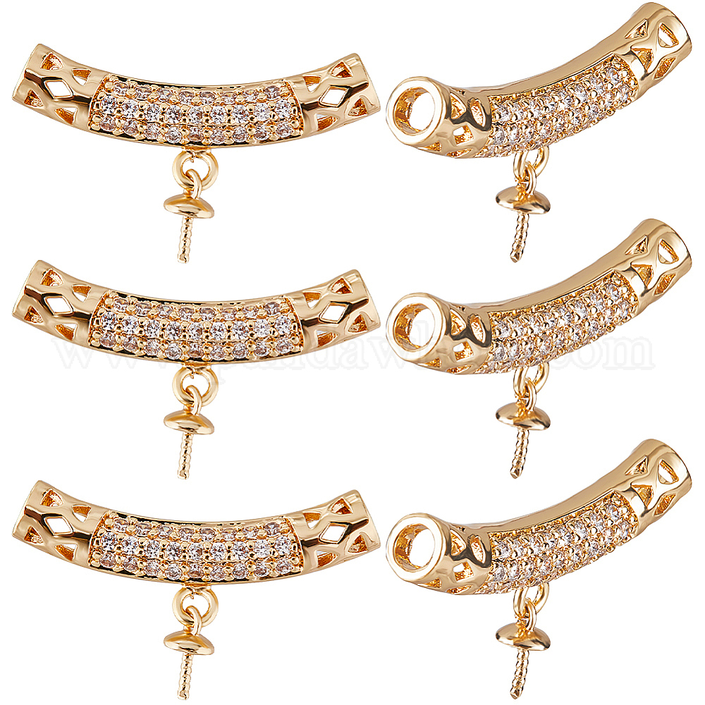 6шт. латунные микропрозрачные прозрачные кубические цирконии штифты-скобы бусины трубка, для полуразрушенной бусины, без никеля