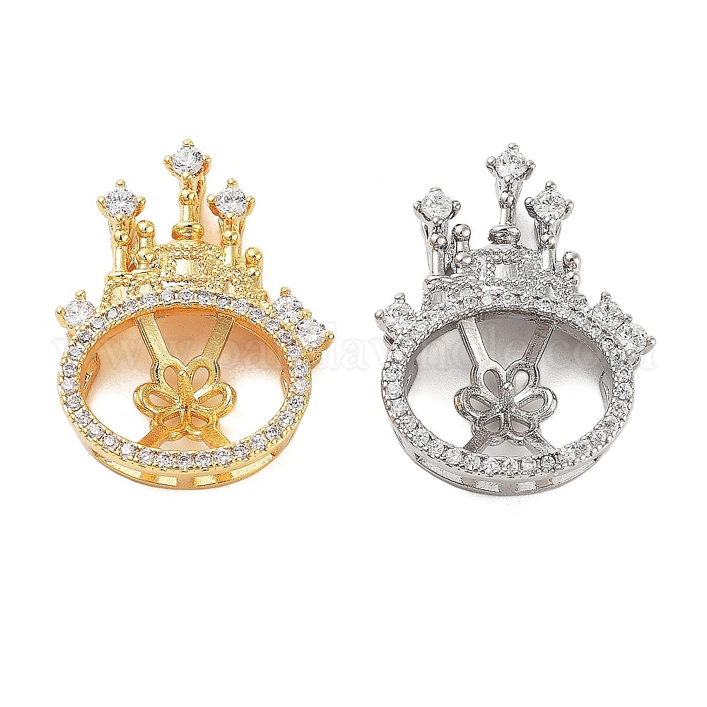 Подвеска из латуни с микропаве и кубическим цирконием в виде замка, поручни, за половину пробурено бисера