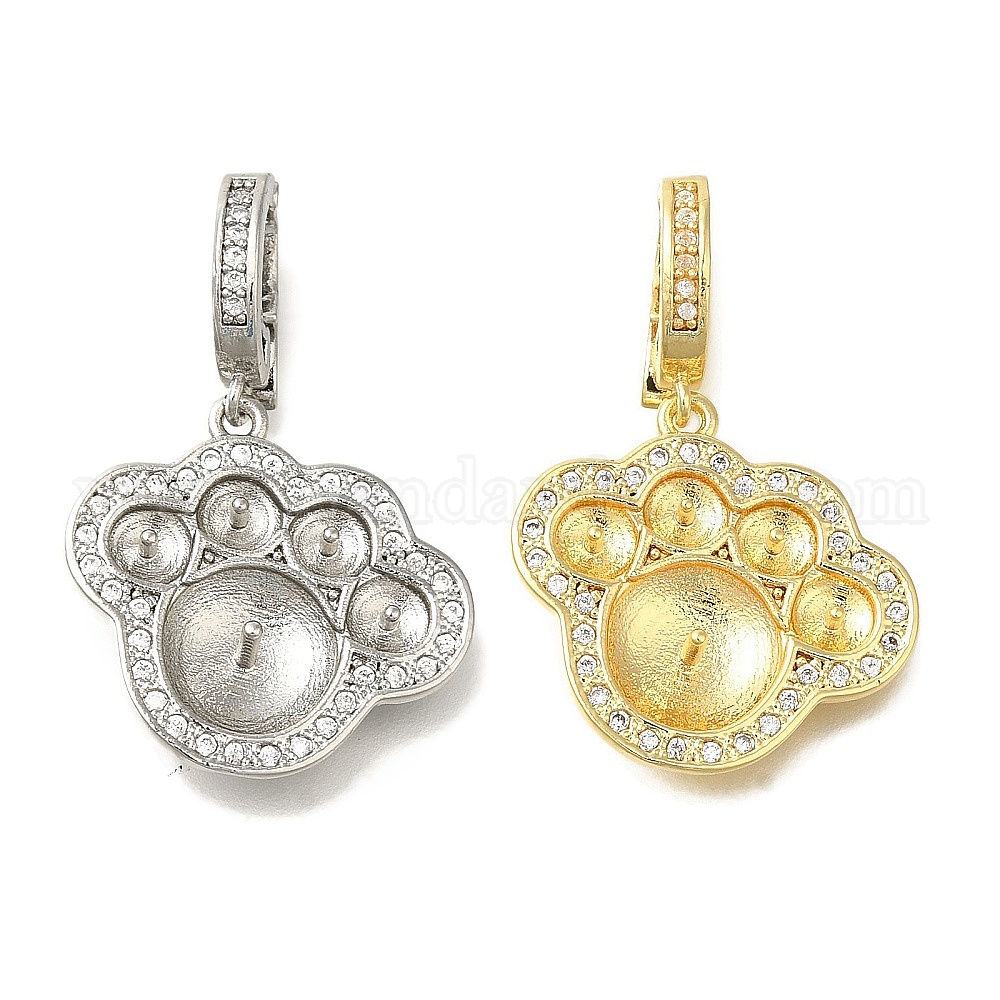 Латунные микро-паве прозрачные кубические цирконии европейские подвески-шармы, привязка поручительств, за половину пробурено бисера, без кадмия, без никеля и без свинца, очарование отпечатка лапы