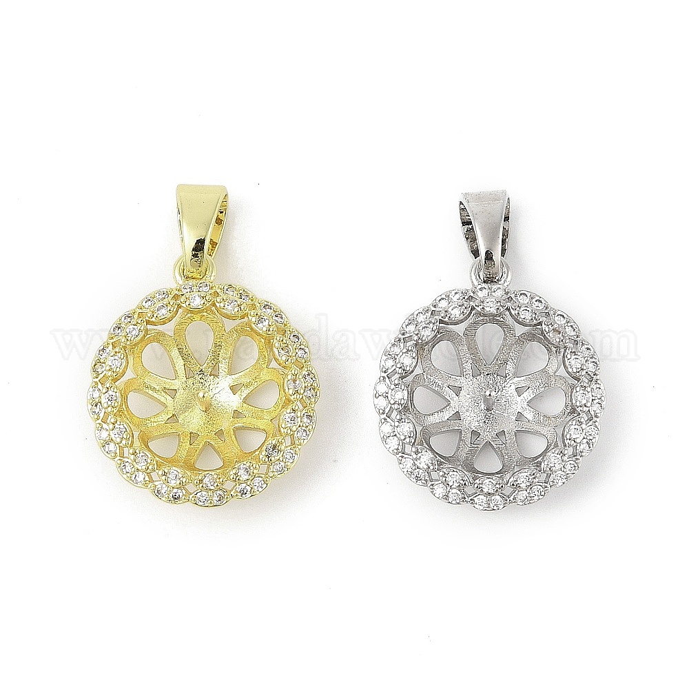 Латунные микро-паве прозрачные кубические цирконии европейские подвески-шармы, привязка поручительств, за половину пробурено бисера, корзинчатая, без свинца и без кадмия, долговечный