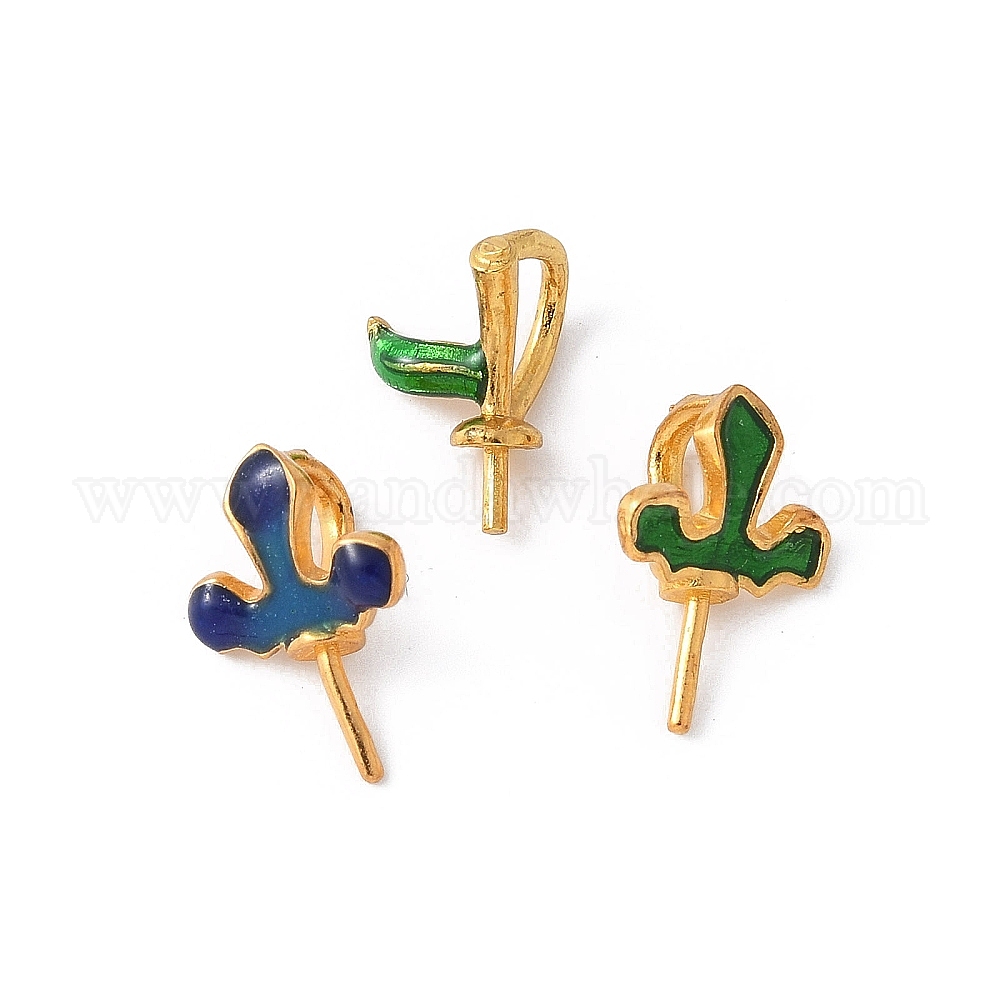 • Зеленый Латунные эмалевые ушковые штифты для крепления колышков, за половину пробурено бисера, стойки покрытие, долговечный, без свинца и без кадмия, лист, зелёные, 12x8.5x5 мм, отверстие : 4x2.5 мм, штифты : 0.8 мм