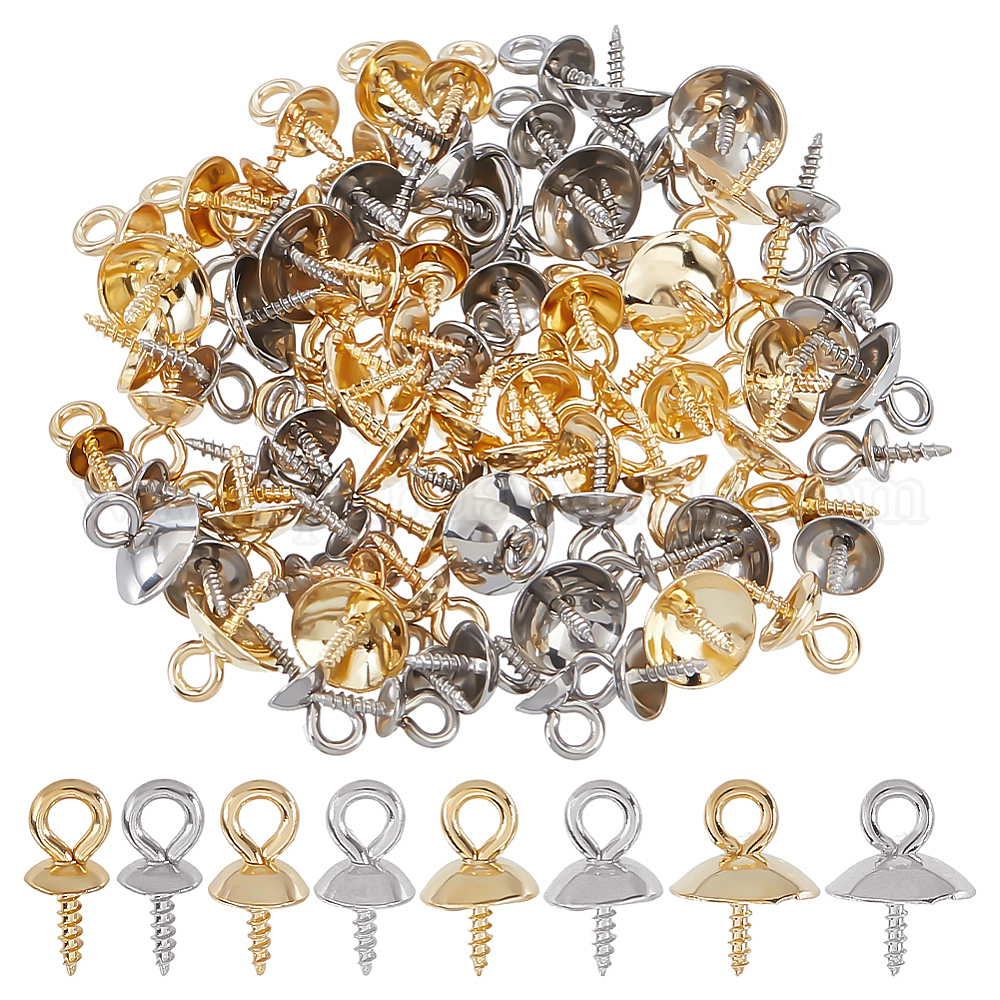 • Золотой & Цвет Нержавеющей Стали 96 шт. 8 цвета 201 подвески из нержавеющей стали, для полузасушливых бусин, золотые и нержавеющая сталь цвет, 10x4~8 мм, отверстие : 2 мм, контактный: 1.2 mm, 12 шт / цвет