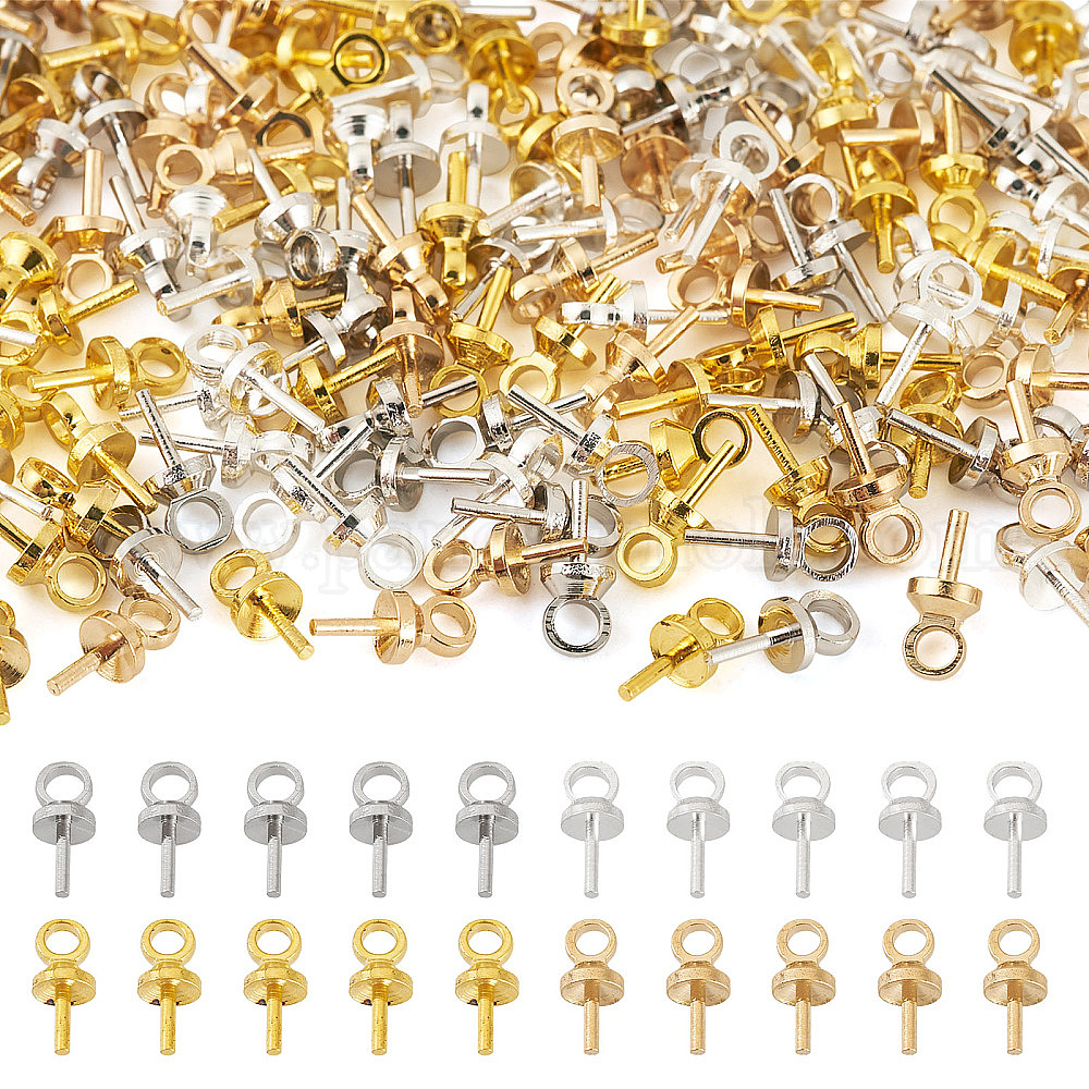 • (52) Непрозрачная лаванда 332шт 4 цвета латунные подвески с колышками, для полуразрушенной бусины, разноцветные, 7x3 мм, отверстие : 1.5 мм, штифты : 0.5 мм, 83 шт / цвет