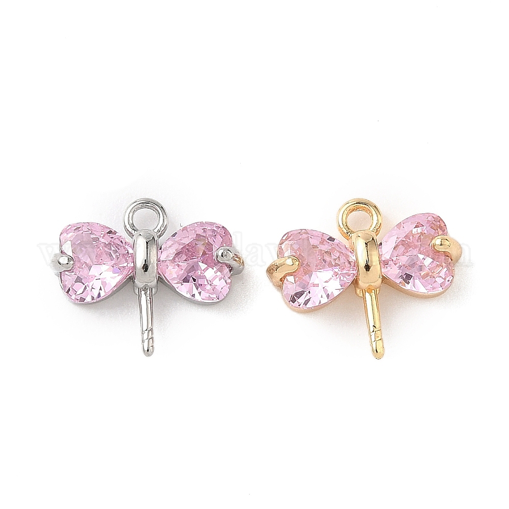 • Платинированный Латунный микро-паве кубический цирконий, бантом, за половину пробурено бисера, Реальная платина, 10x12x3.5 мм, отверстие : 1.4 мм, штифты : 0.7 мм