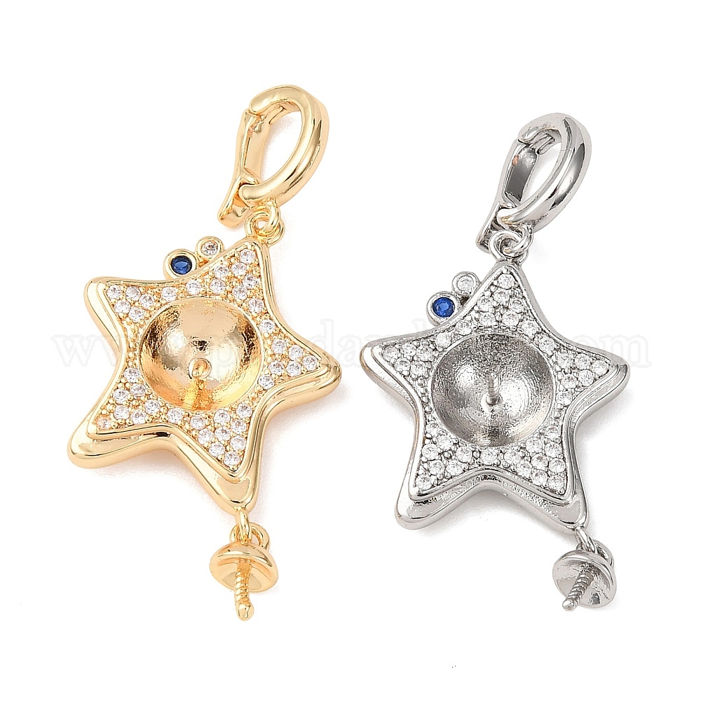 Латунный микро-паве кубический цирконий, звезда, за половину пробурено бисера, стойки покрытие, долговечный
