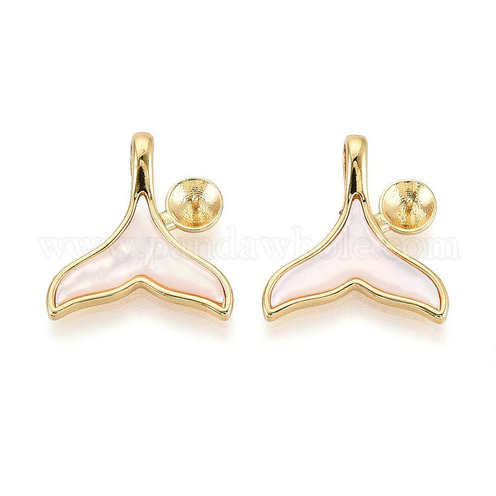 Латунные подвески-булавки с эмалированными чашечками из жемчужин, русалка русалки, за половину пробурено бисера, реальный 18 k позолоченный