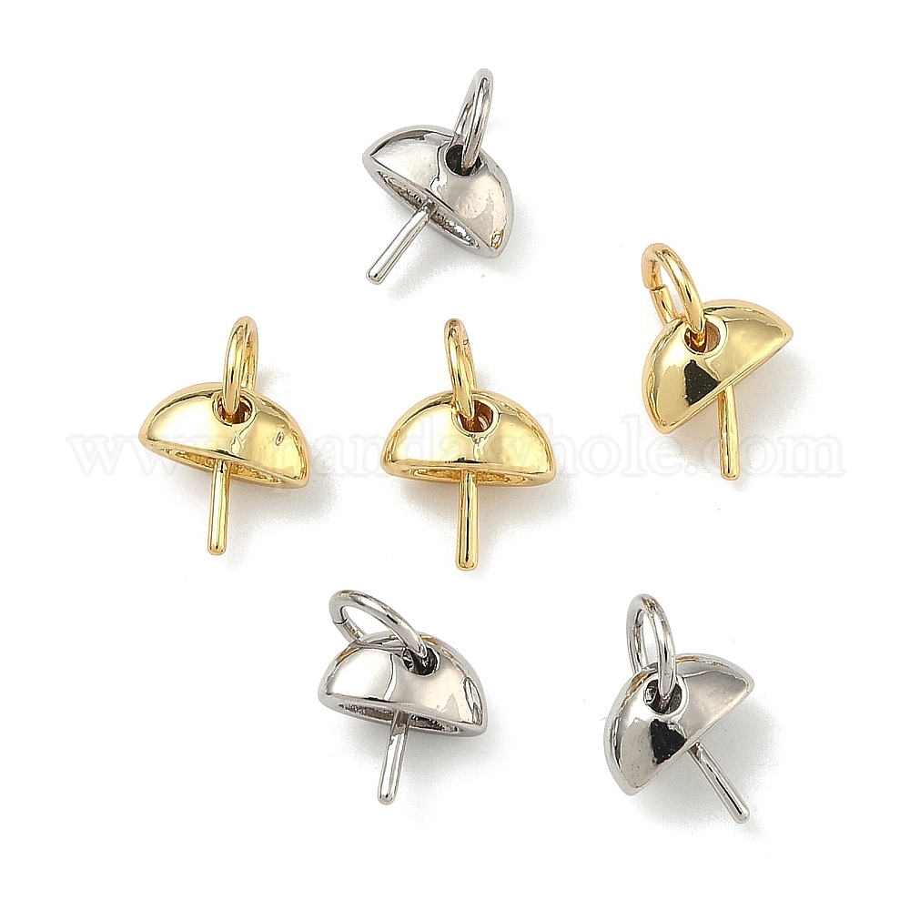 Полукруглые латунные чашеобразные подвески для жемчуга, булавки-держатели для булавок, за половину пробурено бисера, без кадмия и без свинца, стойки покрытие