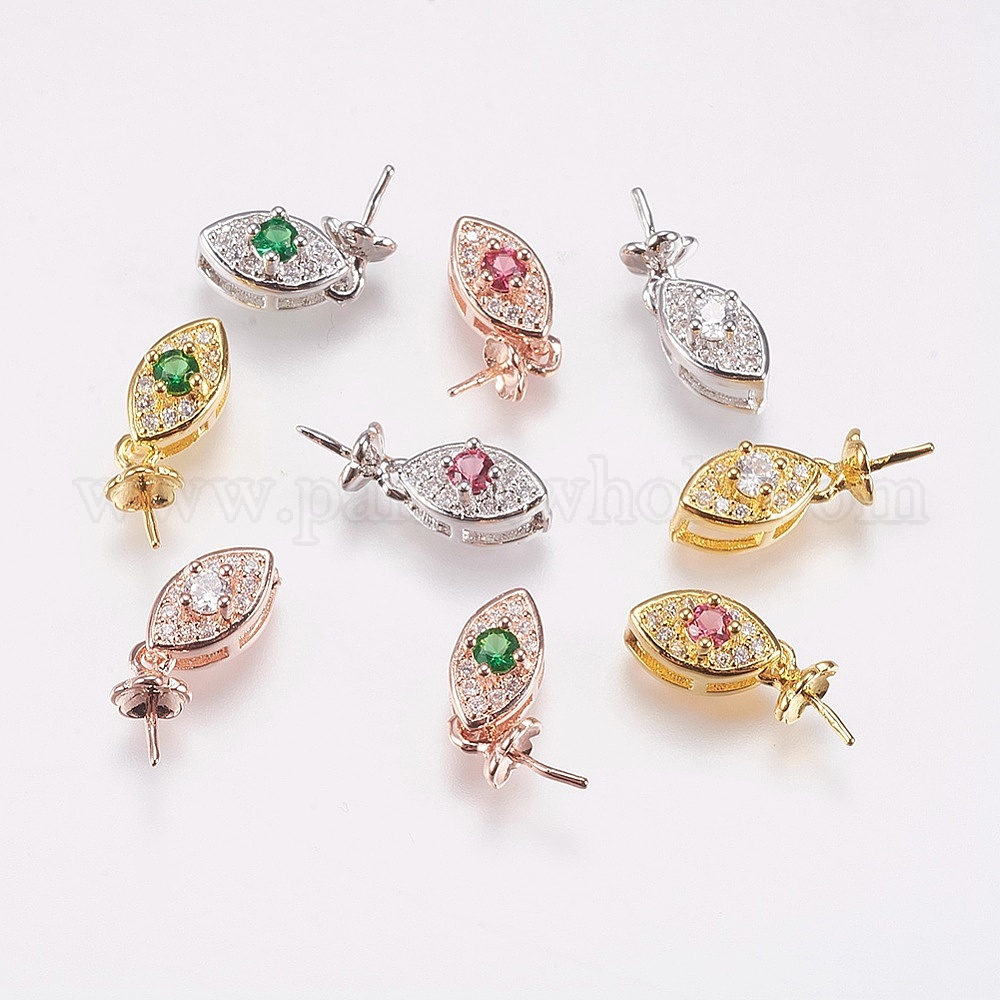 Латунный микро-паве кубический цирконий, за половину пробурено бисера, долговечный, без свинца, без кадмии и без никеля, лошадиный глаз
