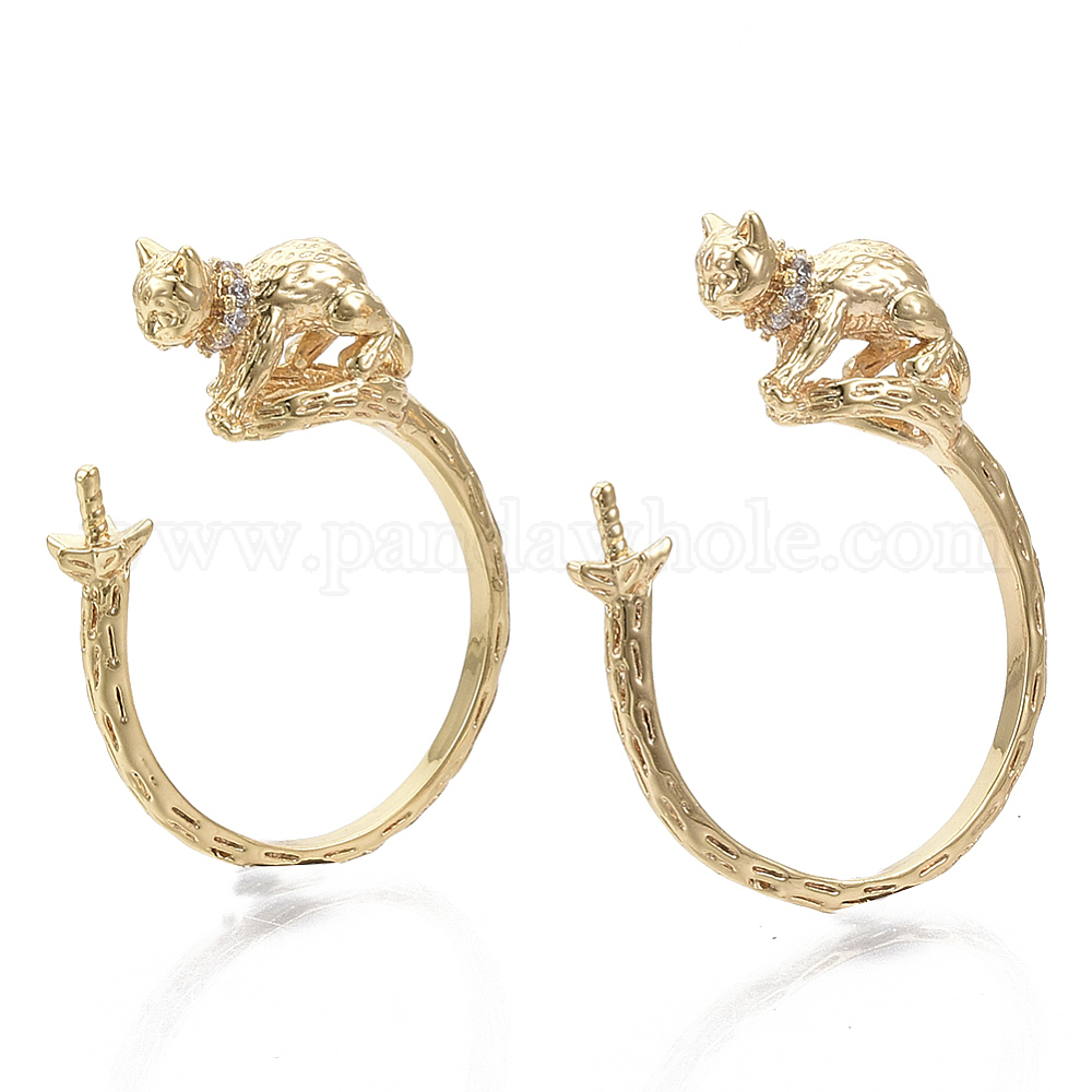 Латунные крючки для котят, с четким кубического циркония, за половину пробурено бисера, без никеля , круглое кольцо в форме кошки, реальный 18 k позолоченный