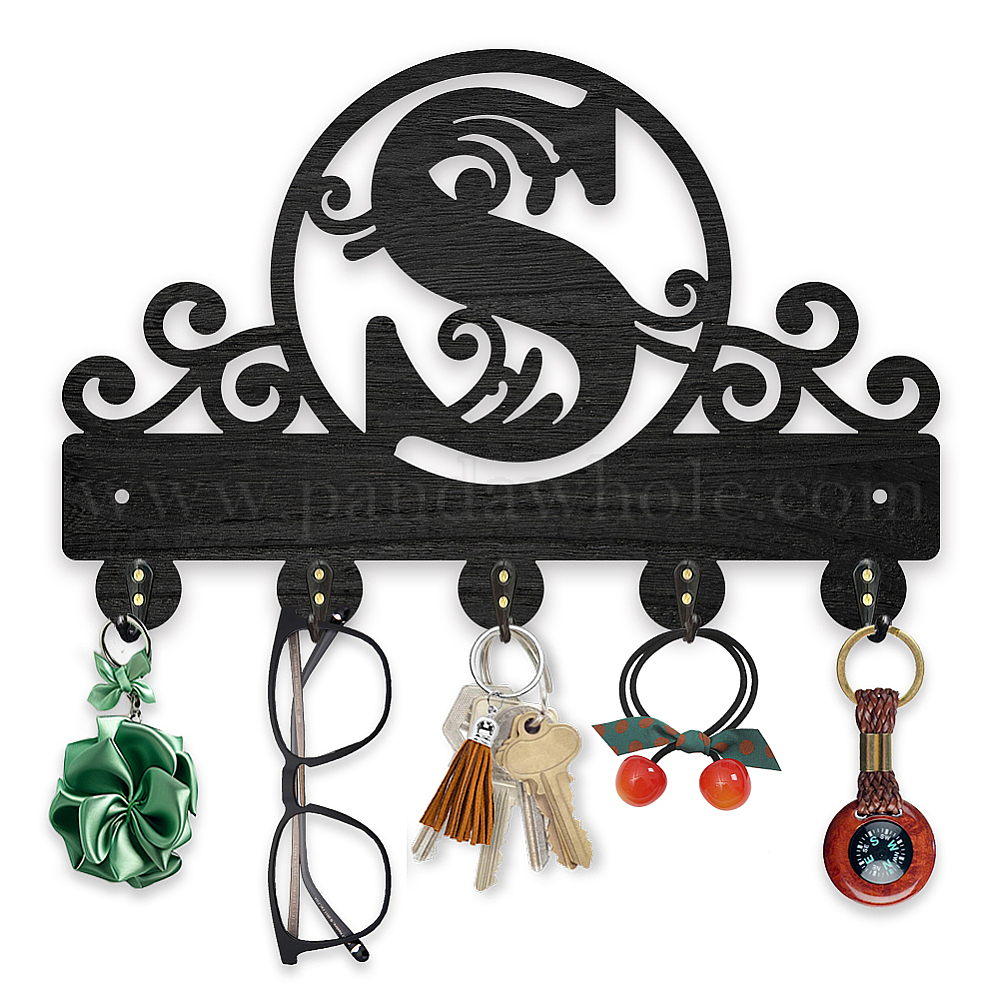 • Волк Настенные вешалки из дерева и железа, декоративная стойка-органайзер, с винтами 2 шт., 5 крючки для сумки, держателя для ключей, шарфа, подвески, волк, 200x300x7 mm.