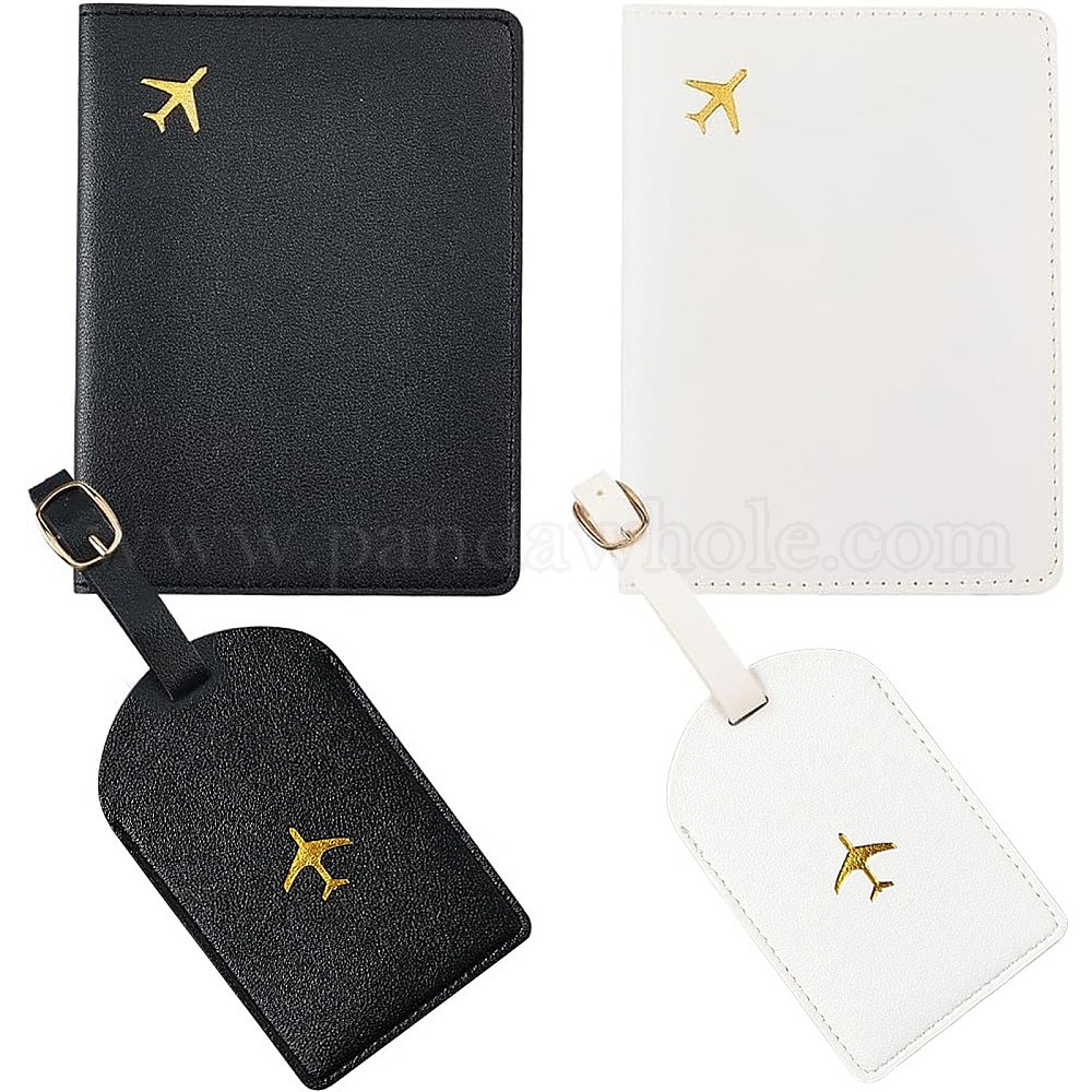 2комплекты из ПУ кожи: багажная бирка и обложка для паспорта, прямоугольные