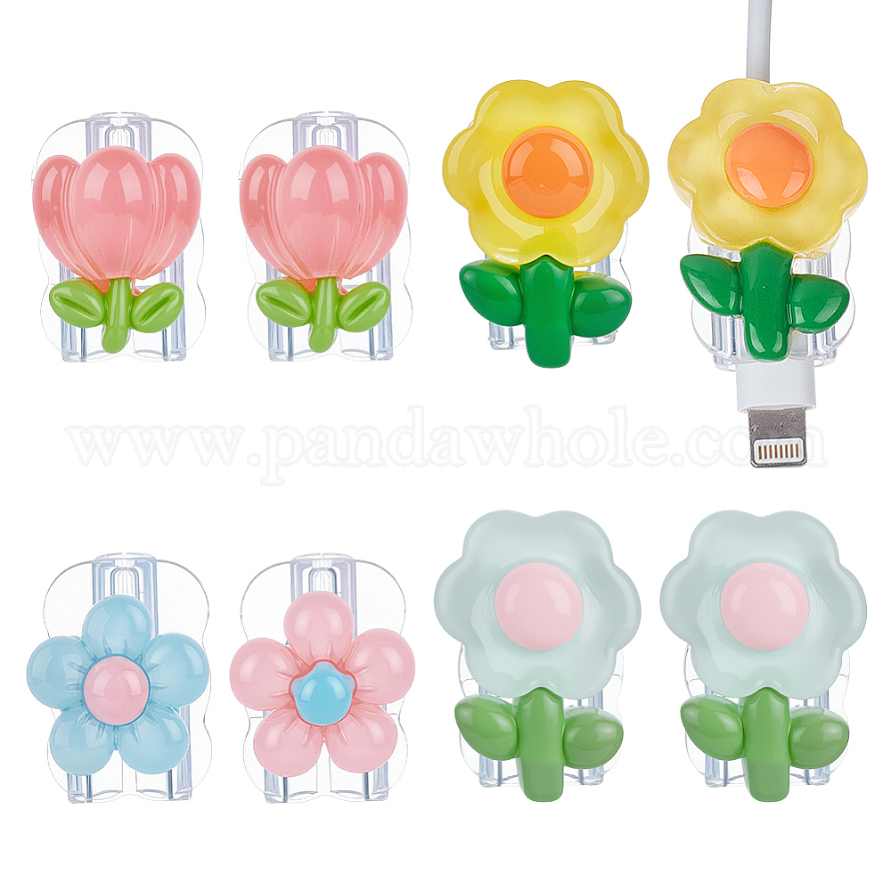4 сумки 4 стили цветок ТПУ защита шнура зарядного устройства, защитные приспособления для кабелей, для большинства линий передачи данных мобильных телефонов и планшетов