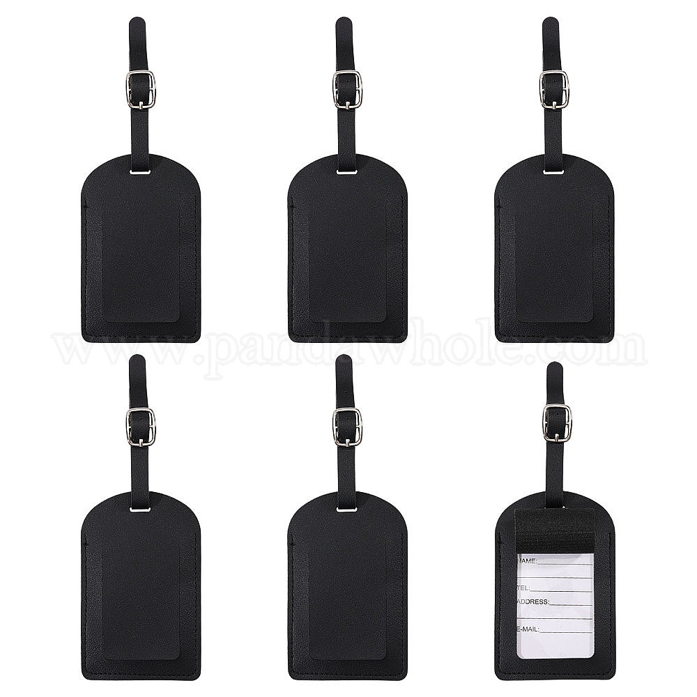 • Черный Багажная бирка из искусственной кожи, этикетки для путешествий, бирки с именами чемоданов, прямоугольные, чёрные, 215~240 мм