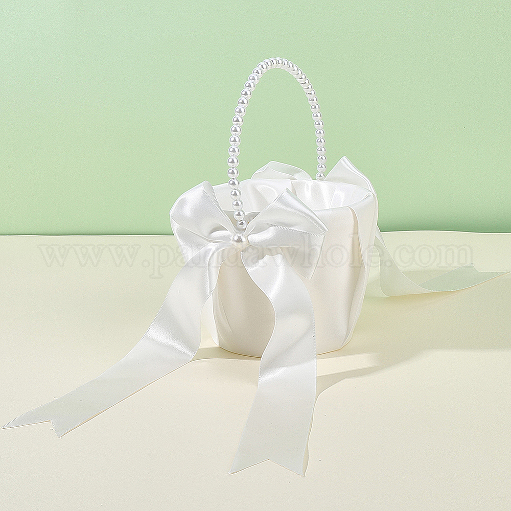 Полиэстеровые цветочные корзины с бантом и пластиковыми жемчужинами на ручке, корзины для хранения на свадьбу