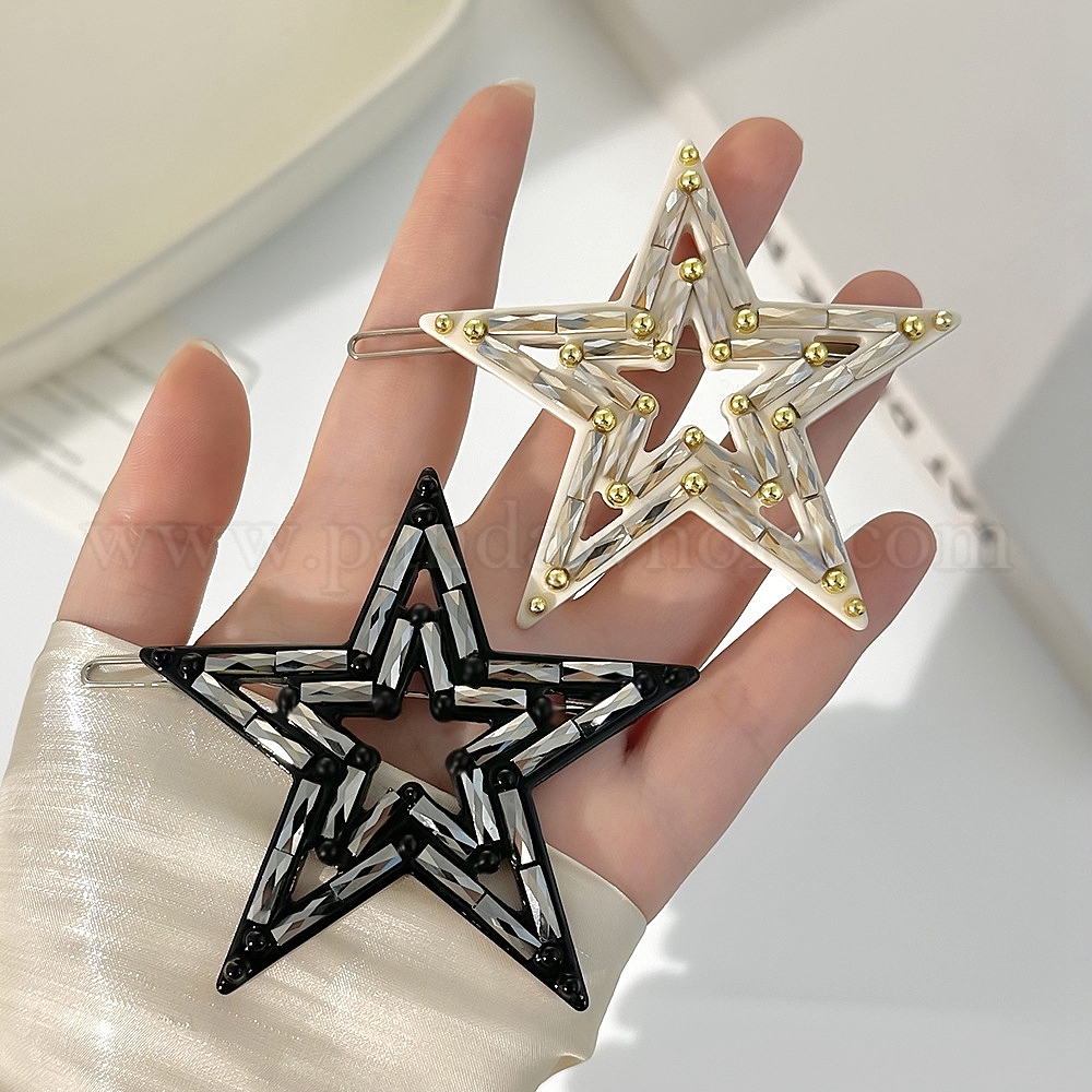 Заколки для волос из ацетата целлюлозы, стразов и железа, звезда