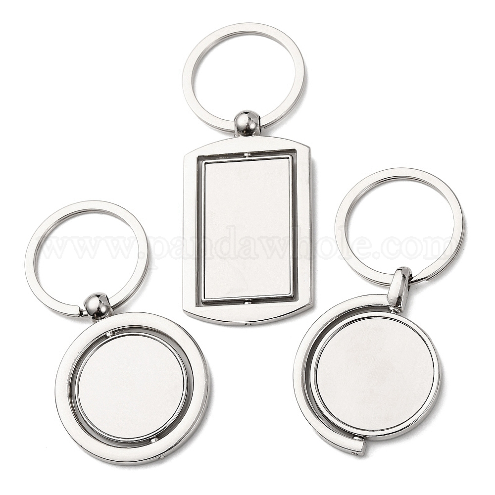 Вращающиеся заготовки для брелоков из сплава для кабошонов, двухсторонняя оправа кабошона с железными кольцами для ключей, платина